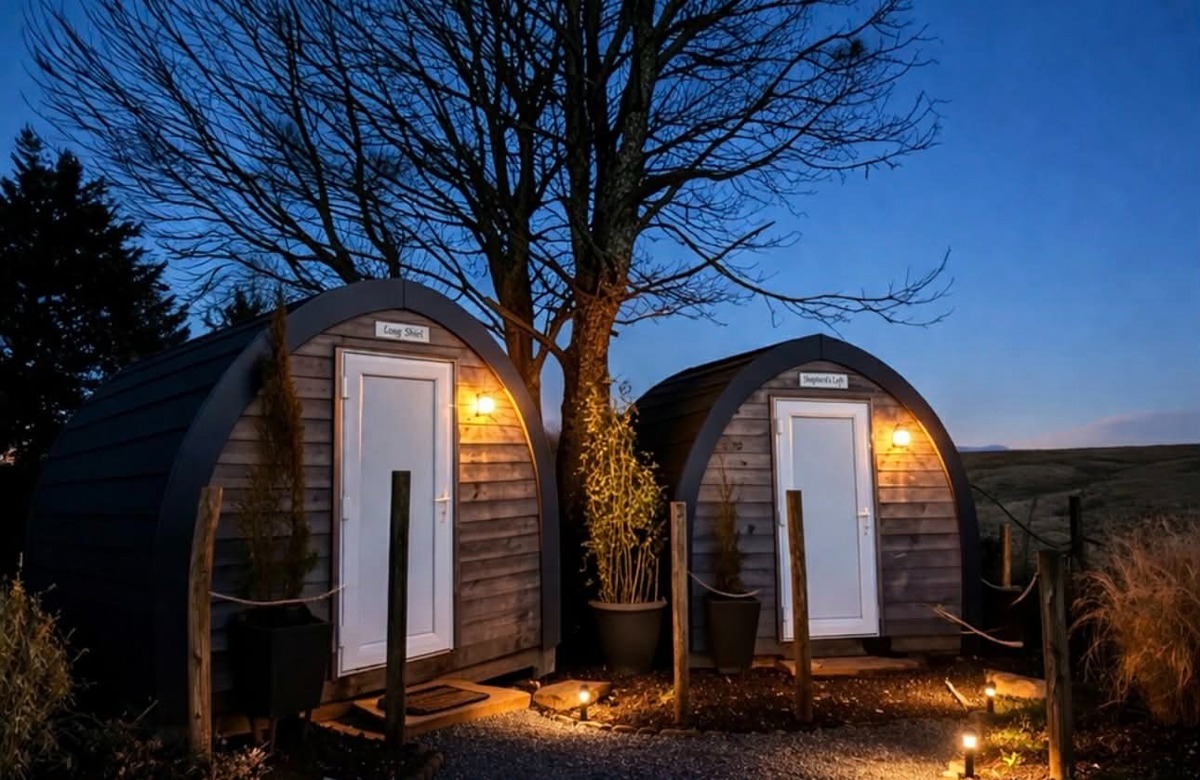 Each pod is thoughtfully designed for comfort and comes with heating, a TV, cozy beds, and essential furnishings, making it a perfect all-season escape. Step outside to take in panoramic views, explore walking trails, or simply relax with a coffee in the fresh country air.